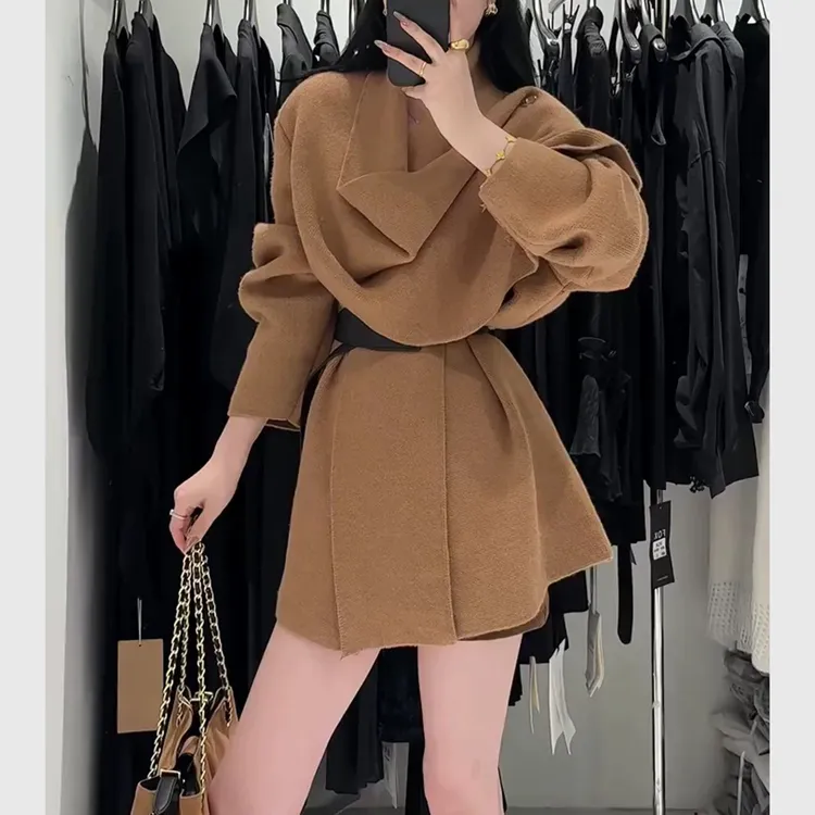 韩系网感韩女高级感老钱风复古氛围感围巾气质慵懒针织外套+腰带 #外套 #老钱风 #品质女装 #温柔风 #韩系穿搭