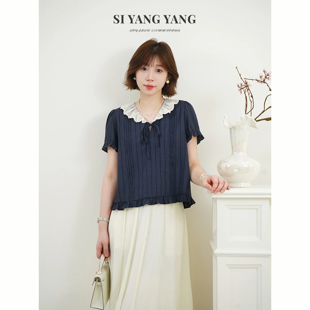 斯洋洋SIYANG立体条纹亚麻减龄轻盈通勤舒适T恤#高级感穿搭 #时尚穿搭女装 #仙女穿搭 #时尚穿搭分享 #爆款搭配